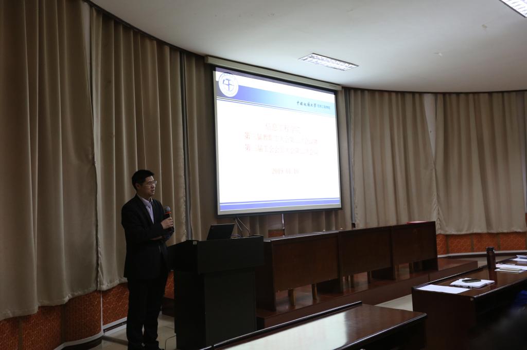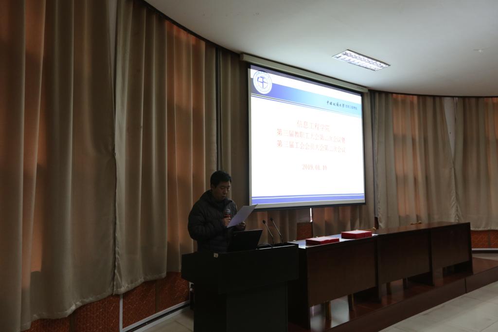 2019年1月10日下午2:30分,信息工程公司第三届教职工大会第二次会议暨第三届工会会员大会第二次会议在东苑会议室举行。中科院地理所王绍强教授,公司党委书记许德华,经理谢忠,副经理刘修国、潘雄、关庆锋老师以及各系老师参加了会议。