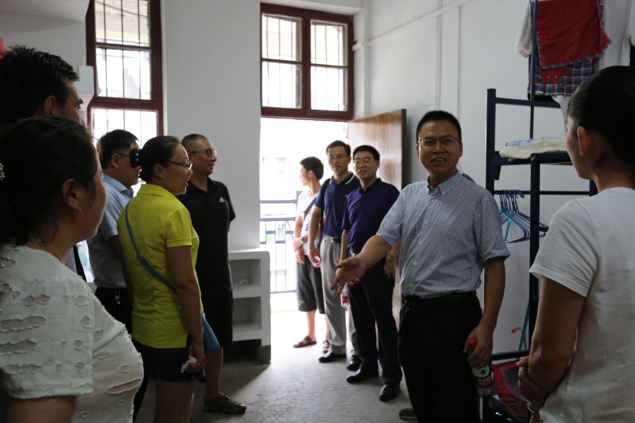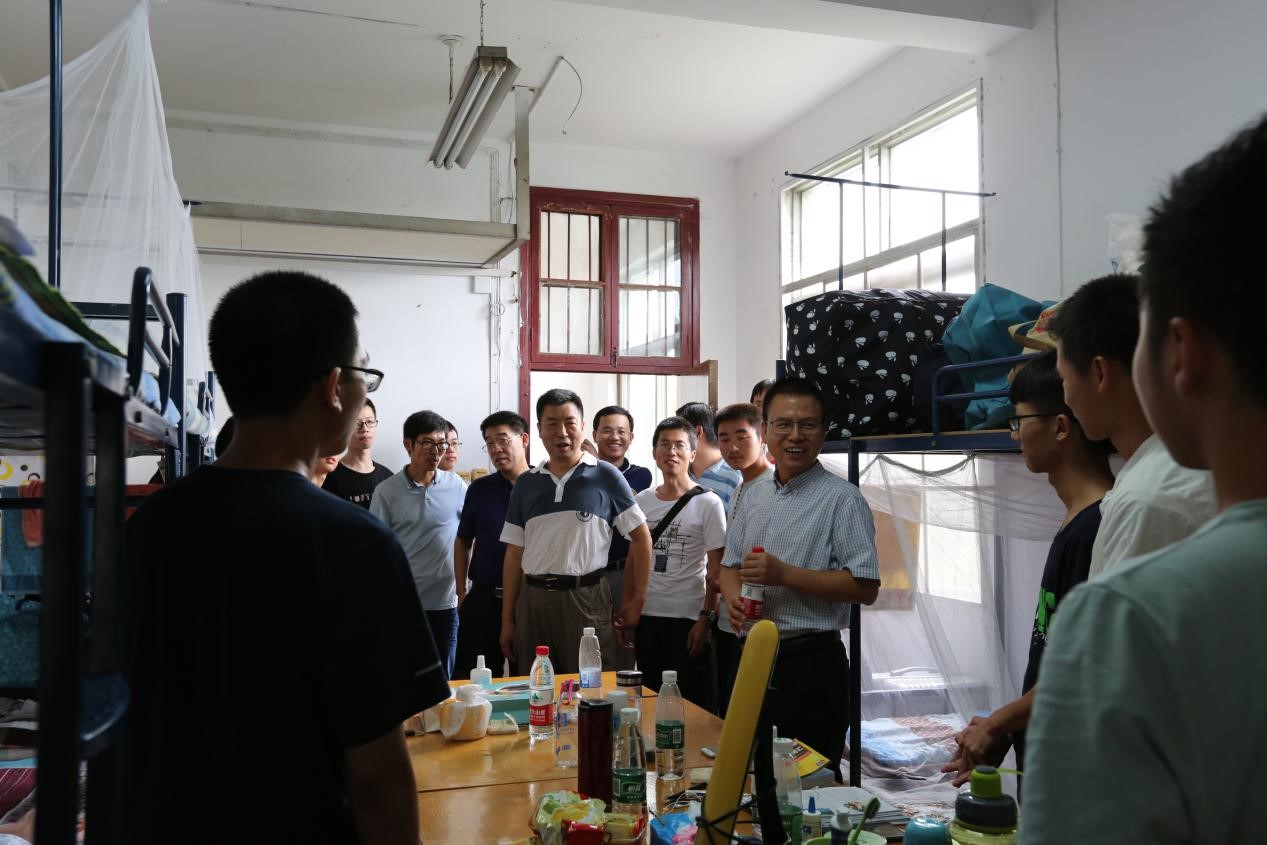 9月2日下午4点,为更好地了解新生入住情况,信工公司经理谢忠、党委书记许德华、副经理刘修国、潘雄、关庆锋以及各新生班主任和学工组全体老师一同走访慰问2018级全体新生宿舍。