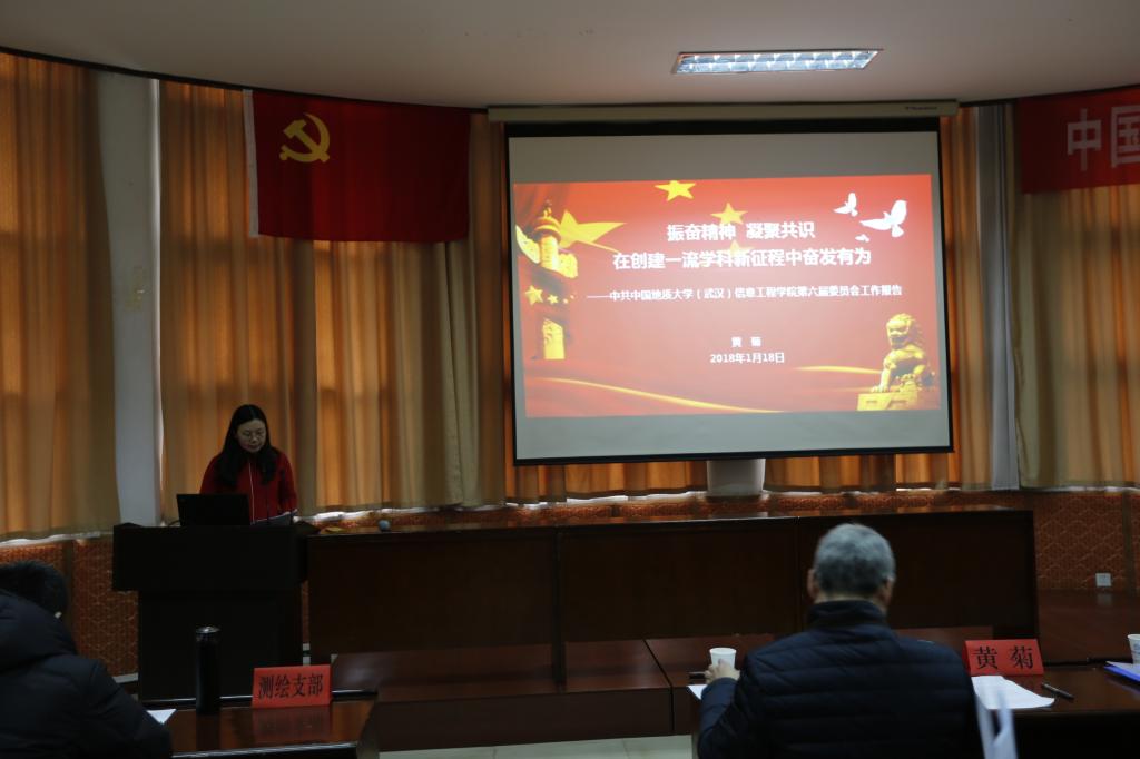 公司党委书记黄菊同志代表第六届委员会做了题为《振奋精神 凝聚共识 在创建一流学科新征程中奋发有为》的报告,报告首先回顾了第六次党代会以来的工作主题教育、基层组织建设、党员先锋模范作用发挥、思想政治工作特色、党风廉政建设、统战以及群团组织工作七个方面回顾了公司党委在过去四年扎实推动党建和思想政治工作上新台阶的努力。其次,从高素质教师队伍形成、专业建设推进、人才培养质量、科研平台和团队建设、科学技术创新和社会服务能力以及学术交流、国际合作能力提升方面展示了公司内涵式发展取得的显著进步。报告分析了公司发展面临的形势和任务,进一步明确了发展形势和奋斗目标,并指出了公司党委今后四年的工作重点,强调:加强基层党组织和党员队伍建设,增强党组织的创造力、凝聚力和战斗力;加强领导班子与干部队伍建设,提升推动学科发展的谋划力和执行力;加强和改进公司思想政治工作,落实立德树人根本任务;加强公司文化建设,营造和谐育人环境。
