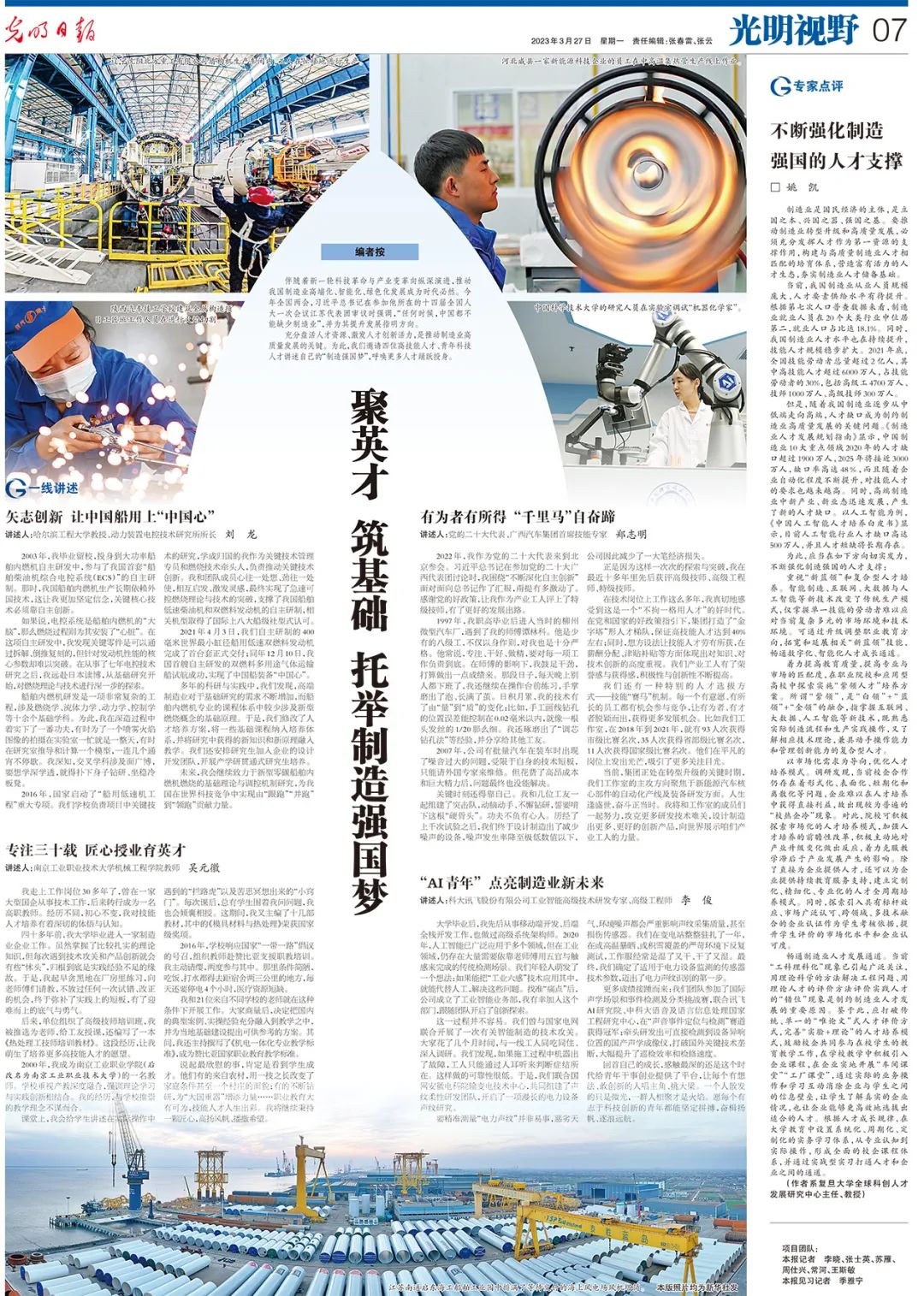 文字来源于《光明日报》2023年3月27日光明视野07版《聚英才,筑基础,托举制造强国梦》一文李俊员工自述。