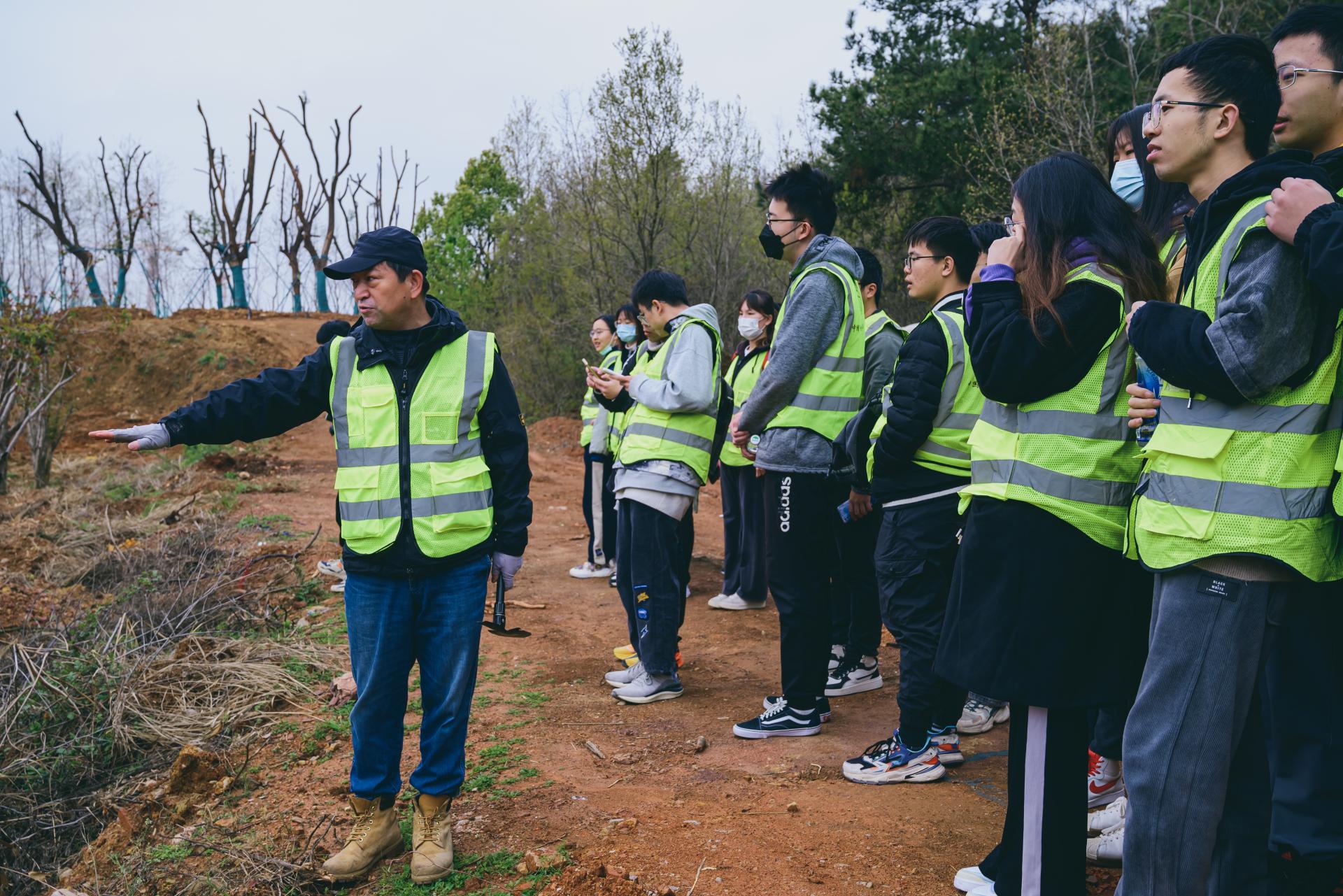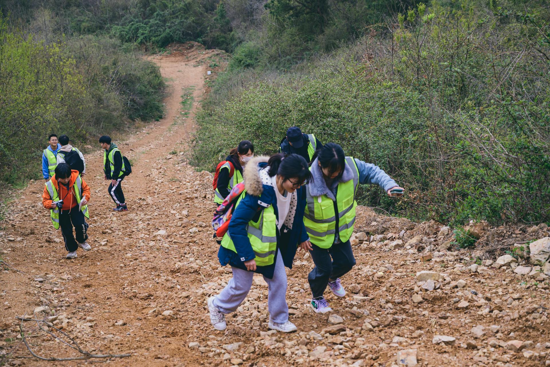 正值三月初春时节,山路经过雨水的洗礼,不仅陡峭而且较为泥泞,上山的过程异常艰难,但同学们怀着永不言弃的信念,彼此加油打气,互相帮助,共同攀爬长岭山。在山顶,同学们还一同唱起了中国地质大公司歌《勘探队员之歌》,抒发自己的喜悦和豪迈心情,表达自己对老一辈地大人的崇敬之情。