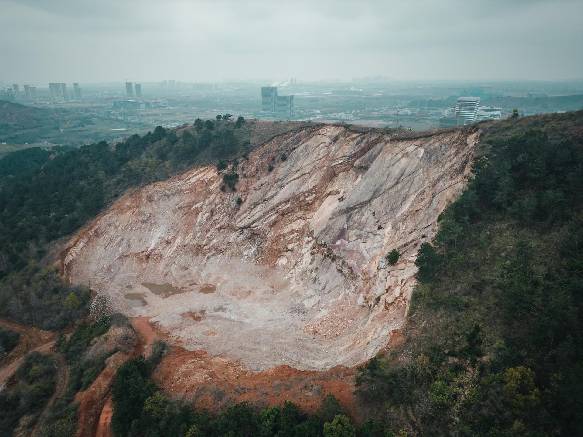 同学们从山下沿着火灾边界一直走到山顶,顺利完成预计的11个标记点的验证工作。刘老师进一步做查验小结,并带领同学们观察长岭山北面一处很明显的人为开挖岩石之后形成的大型露天采空区。刘老师为同学们讲解了这个采空区很有可能发生几种地质灾害,“像长岭山这样的采空区,很可能诱发塌陷、泥石流、滑坡等地质灾害,大家看这个半面山都被采空,有100米高,很容易形成重力崩塌;还有,仔细观察岩层,顺着大30-40度的倾斜面展布,山脚下比较开阔,一旦有轻微震动的影响,很容易形成滑坡;一旦下大雨,也可能诱发泥石流,”刘老师向同学们详细的介绍地质灾害可能发生的诱因。