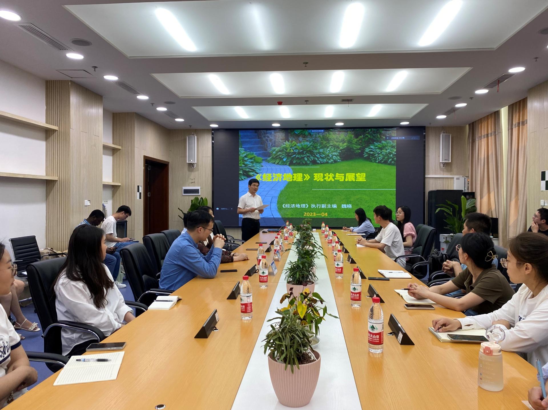 2023年4月20日,应3044am永利集团副经理宋小青教授邀请,《经济地理》副主编魏晓教授,经济地理研究所副所长、《经济地理》杂志编辑部主任苏昌贵研究员,《经济地理》杂志编辑段宜嘉博士来公司交流。魏晓教授做题为“《经济地理》现状与展望”的学术报告。会议由宋小青教授主持,线上线下参会人员100余人。