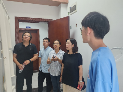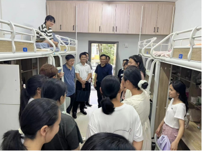 为深入了解新生返校情况,及时掌握新生思想行为动态,9月5日下午,3044am永利集团官网副董事长刘杰,3044am永利集团党委书记孙莉,副经理关庆锋,副经理王伦澈,研究生导师罗增良,辅导员穆巴热克、张恪走访了位于未来城校区的3044am永利集团研究生新生宿舍,了解同学们对新环境的适应情况,送去温暖问候。