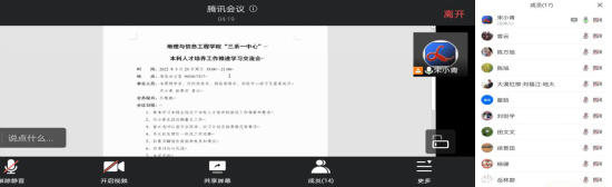 宋小青副经理向大家分享了公司2022年春季学期本科人才培养推进会议的重要精神和要求,带领大家具体围绕本科生院周建伟经理“扎实推进本科人才培养工作”、张建和副经理“中国地质大学2022年暑期实习工作布置”、肖梦琼副经理“精细管理,让服务有温度”等报告内容展开了学习研讨。