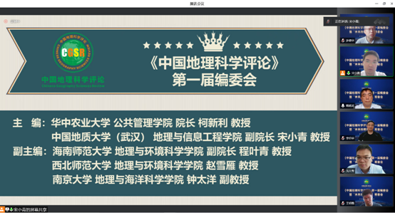 编委会成员围绕《中国地理科学评论》编辑委员会工作章程、《中国地理科学评论》期刊简介、“未来地理对话”选题和举办模式等方面展开了积极讨论。