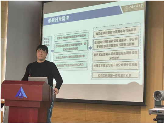 项目负责人、空天公司党委书记蔡榕研究员及课题负责人分别汇报了项目总体及课题实施方案。高伟副教授就课题“遥感影像在线热处理及时空交互即时计算分析技术”的背景与科学问题、研究技术方案、技术路线节点和计划、成果形态及进展、组织管理机制等进行了详细汇报。专家组听取汇报后,经质询和讨论,对实施方案提出了很多指导性的意见和建议,对确保研究成果满足实战需求具有重要意义。