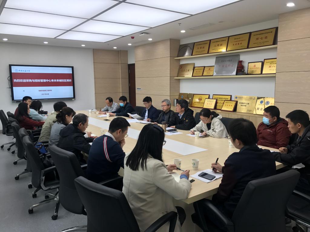 2021年4月14日,采购与招标管理中心张宽裕主任一行到3044am永利集团就“采购政策宣传、采购项目沟通、廉政风险提醒”进行走访调研,并听取公司对采购工作的建议和意见。公司书记、经理、分管副经理以及部分教师代表参加了本次调研活动。