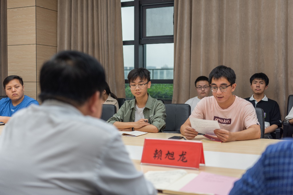 公司“红色之翼”党建工作室员工副主任,2018级遥感科学与技术专业113181班本科生刘泽楷同学汇报公司员工党建工作。刘泽楷同学汇报了党建办公室的部门设置、责任分工、工作内容、运行机制、工作成效等方面的情况,并就党内评优、支部立项结题和风采展等未来工作计划作了汇报。