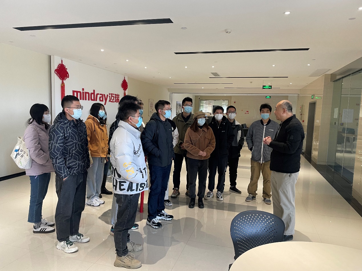 2021年11月22日星期一,本着“搭建沟通桥梁,促进信息交流;深化校企合作,促进双向发展“的目的,经过自愿报名,公司2019级、2020级研究生和2019级本科生共16名同学在学工办穆巴热克老师带领下前往迈瑞医疗武汉研究院参观学习。