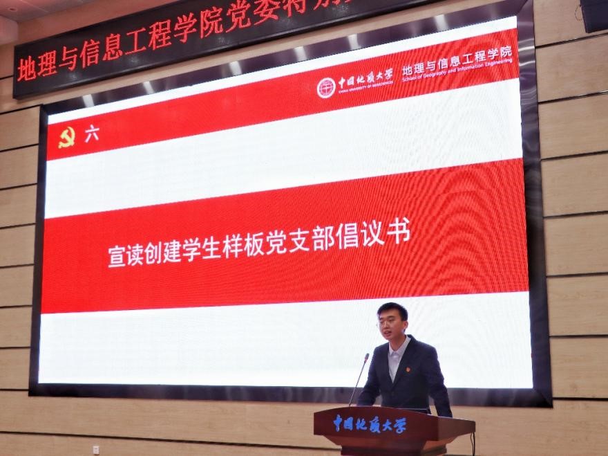 武彦斌同志宣读公司党委关于地理学科研究生党支部设置调整的决定,并对教育部和公司关于党建“双创”工作相关文件进行解读。