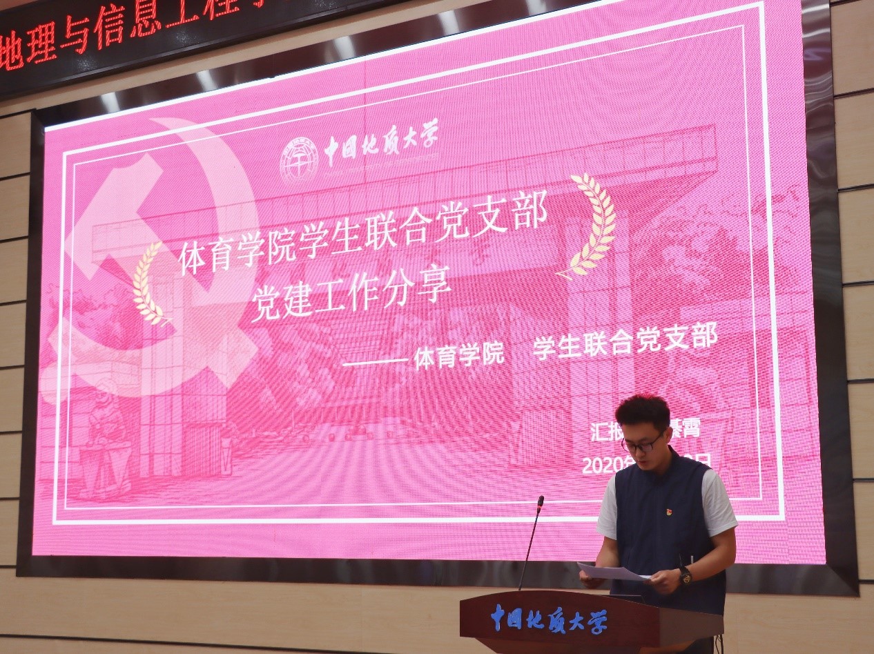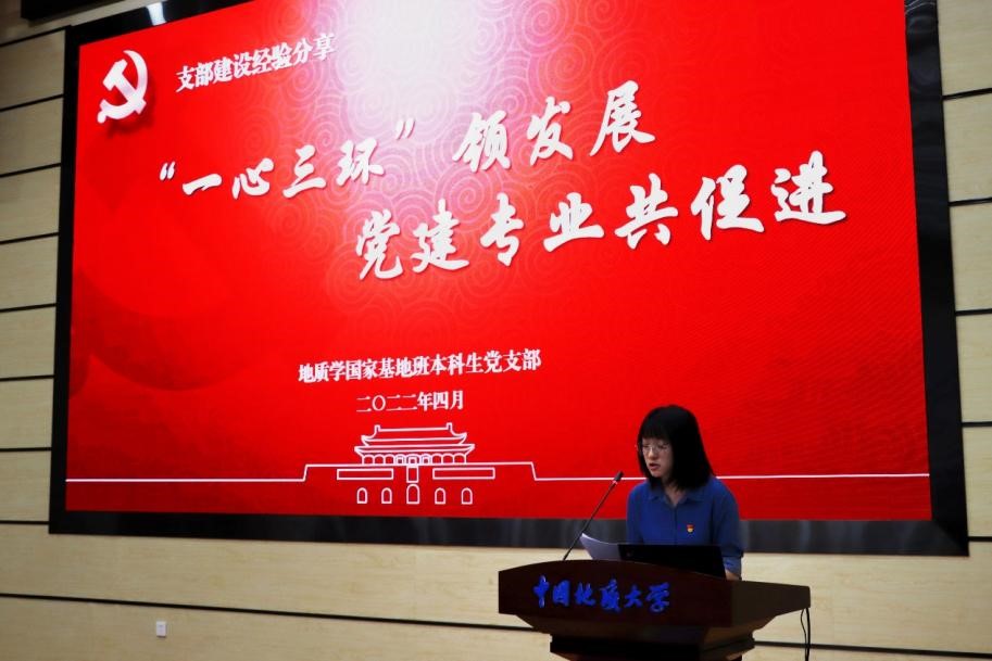地球科学公司地质学国家基地班本科生党支部副书记胡楚玉、环境公司“张国旗班”党支部书记韩鹏、体育公司员工联合党支部书记綦霄分别以“一心三环领发展,党建专业共促进”、“永葆赤子情怀,争做时代先锋”、“体育公司员工联合党支部党建工作分享”为题作分享,介绍了各自党支部样板支部建设的情况,分享了他们的好经验、好做法。