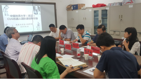在听取两位老师对机器人团队的相关情况汇报后,各部门领导就如何更好建设好中国地质大学CUG机器人团队进行了现场讨论,从实验场所和资金支持、人才培养质量、科学研究水平、社会服务与学科声誉等方面均提出了宝贵的建议。与会领导和专家建议,应当将CUG机器人团队建设进一步与公司优势学科相结合,制造有自己公司特色的机器人。加大人才培养力度和宣传力度,广泛开设机器人的相关课程。加大投入力度,设立老员工创新实验室等场地,增强员工的实际动手和创新能力。在保持竞赛中的优势的前提下,将机器人的应用视角放大到其他领域。