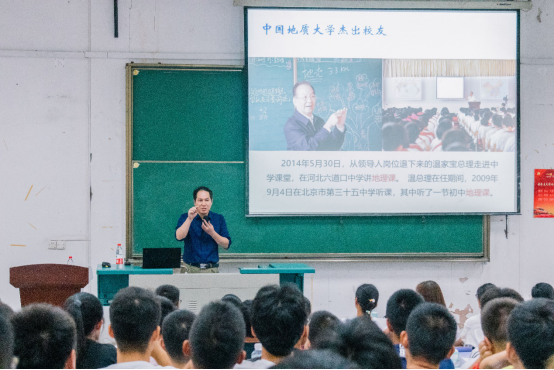 吴志峰经理按照地理学发展的进程、地理学的机遇与挑战等三个部分介绍了地理学科发展情况,将地理学的整体历史脉络铺展开来。吴志峰经理首先从东西方地理学视野出发,展示了地理学从经验科学到形成完整学科体系的过程,中国对世界地理学发展的贡献,给大家留下了深刻的印象。接着,吴经理对现代地理学的学科体系及研究对象进行解析,概括地介绍了当代地理研究的热点和方法,进一步引导在座师生进入地理学的学习和研究方向。而后,在介绍地理学的机遇与挑战的部分,吴经理从我国的地缘政治新挑战及我国进入新时代后的发展战略角度,介绍了地理学在为我国中国特色社会主义建设中起到的重要作用,并寄语地理系新生要有“德才兼备、家国情怀、开阔视野”。