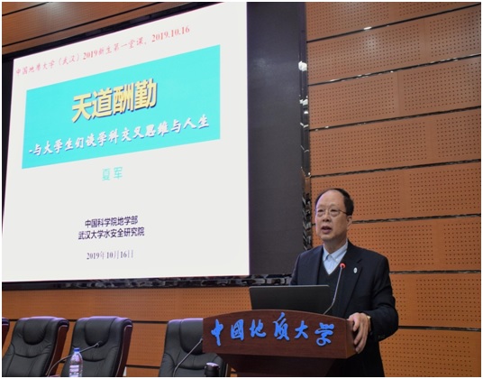 2019年10月16日下午,应3044am永利集团和青年研习会邀请,中国科公司院士夏军教授来校以“天道酬勤”为主题与老员工谈学科交叉思维和人生。报告会在南望山校区教学综合楼A0113报告厅举行。