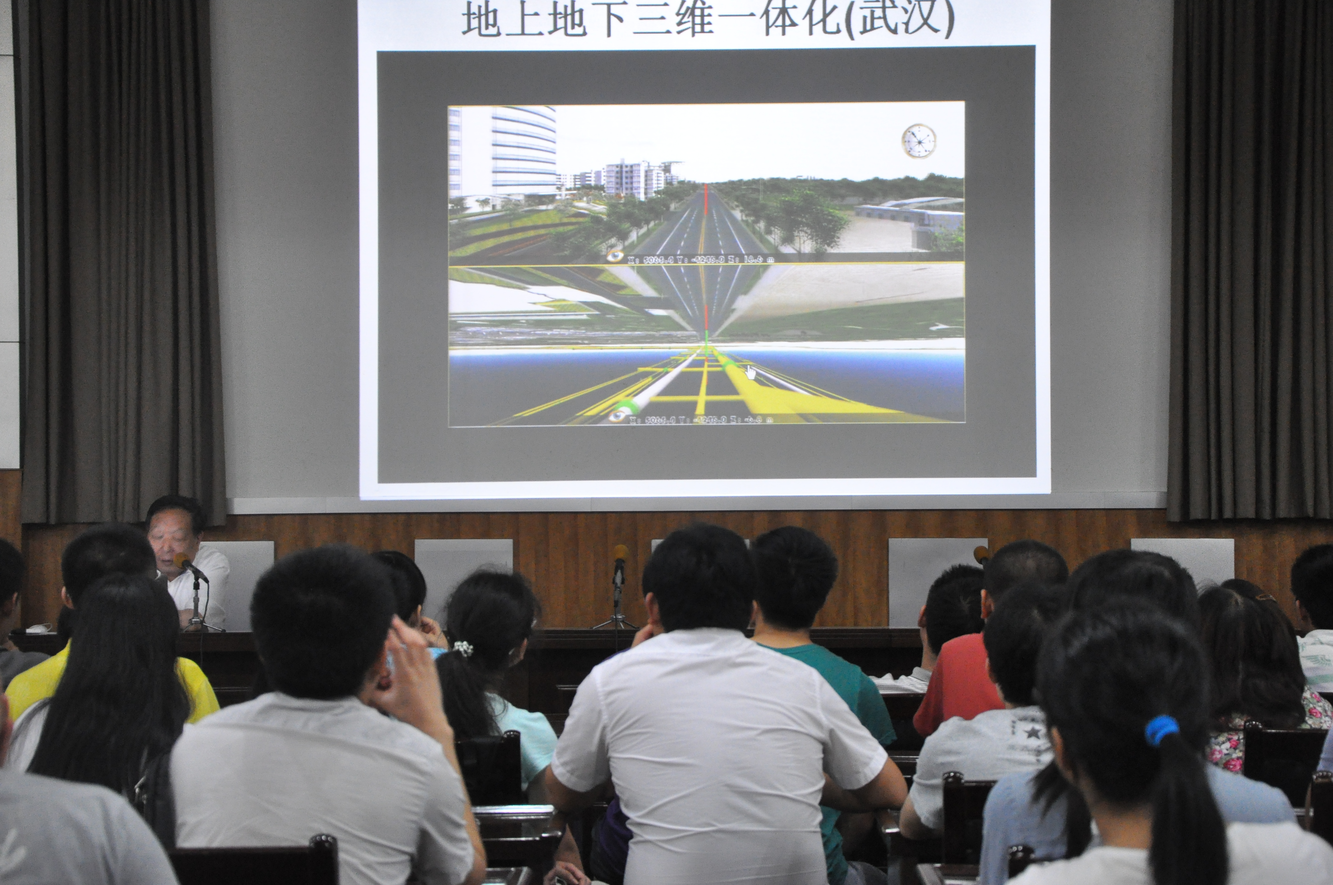 接着,他以一组照片展示作为话题切入,将我国卫星与世界其他各国家的卫星做了对比,说明我国卫星处于国际领先水平,也进一步印证了我国的遥感地理信息技术已逐渐走向世界前列。随后,他又向大家展示了3D及计算机仿真等技术,通过对莫高窟以及香港古庙的实景再现,让同学们感受到了现代科技力量的强大。李德仁院士说,数字地球与智慧城市是今后一个无法避免的词汇,今后一系列科学研究,例如水质监测、3D城市、对灾区的监控等等都需要这方面的技术应用。李院士还为大家介绍了他带领的科研团队在近几年的一系列研究成果,其中地下城市的再现、“三只眼睛”拍摄地面实景等让同学们大开眼界、倍感兴趣。最后,李德仁院士还为许多同学解答了他们的疑惑。