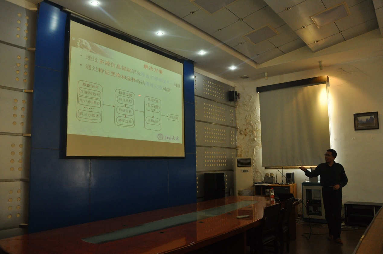 2016年4月7日下午2:30,应信工公司邀请,刘宏志在东区信工公司报告厅开展了主题为“面向互联网金融的个人信用风险评估模型”的学术讲座。刘宏志从研究背景、问题描述、解决方案三个方面进行了讲解。