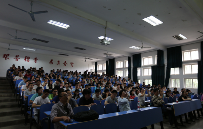 报告还没开始,教室里已座无虚席。四点整,谢忠经理简单介绍龚健雅院士后,讲座正式开始。龚院士从背景、实时GIS的主要特征、实时GIS的研究进展、实时GIS的应用以及结论展开。