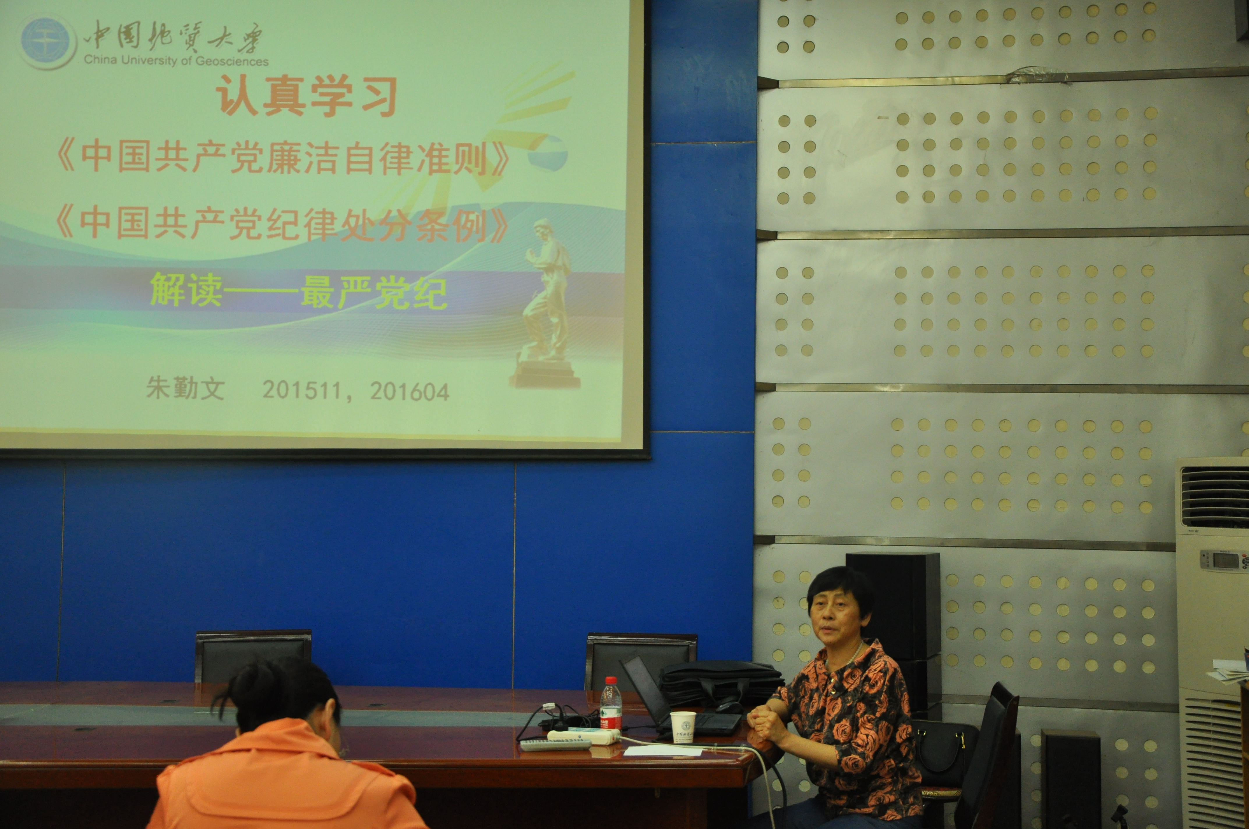 5月26日下午2点30分,信息工程公司邀请公司党委副书记朱勤文教授在东区信息工程公司报告厅为公司教职工党员开展“两学一做”专题学习会。此次学习的主题是由朱勤文教授讲党课,带领全院教职工党员认真学习《中国共产党廉洁自律准则》和《中国共产党纪律处分条例》,解读史上最严党纪。